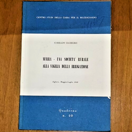 URRA UNA SOCIETA' RURALE ALLA VIGILIA DELLA IRRIGAZIONE di Corrado Barberis. Centro studi della cassa per il mezzogiorno, Quaderno n. 40, Alghero, maggio luglio 1960. 63 pagine, diverse tabelle e tavole più volte ripiegate fuori testo. Copertina editoriale in brossura. Stato di conservazione: molto buono (pagine normalmente ingiallite)