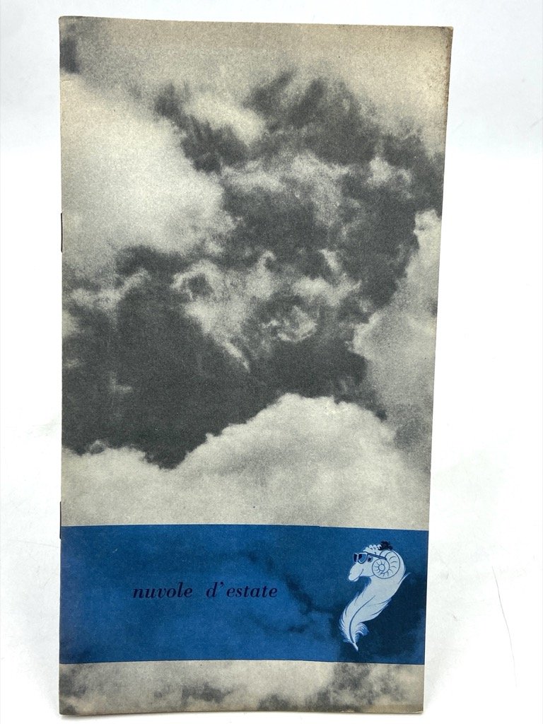 Spillato, cm 24 x 13, pp (8) illustrate in bicromia azzurro e nero. Ottimo stato. Uno degli opuscoli realizzati dalla sezione italiana del Segretariato Internazionale della Lana attorno alla metà degli anni '50 per promuovere l'utilizzo del filato nella moda e in altri campi. L’IWS, International Wool Secretariat, fu fondato a Londra nel 1936 e raccoglieva i principali produttori di lana; nel 1964 l’IWS lanciò il marchio Woolmark, disegnato da «Franco Saroglia», pseudonimo di Franco Grignani che con la moglie Jeanne aveva realizzato manifesti e campagne per la sede italiana dell’ente negli anni ’50. Questo opuscolo illustra le qualità della lana come tessuto per l'abbigliamento estivo (prevalentemente maschile); le illustrazioni non sono firmate, in copertina campeggia un logo, a quanto ci risulta non ripetuto altrove, con una piuma da cui emerge un simpatico ariete con gli occhiali da sole. In quegli anni le campagne italiane dell’IWS erano curate dallo Studio 37 di Franco e Jeanne Grignani.