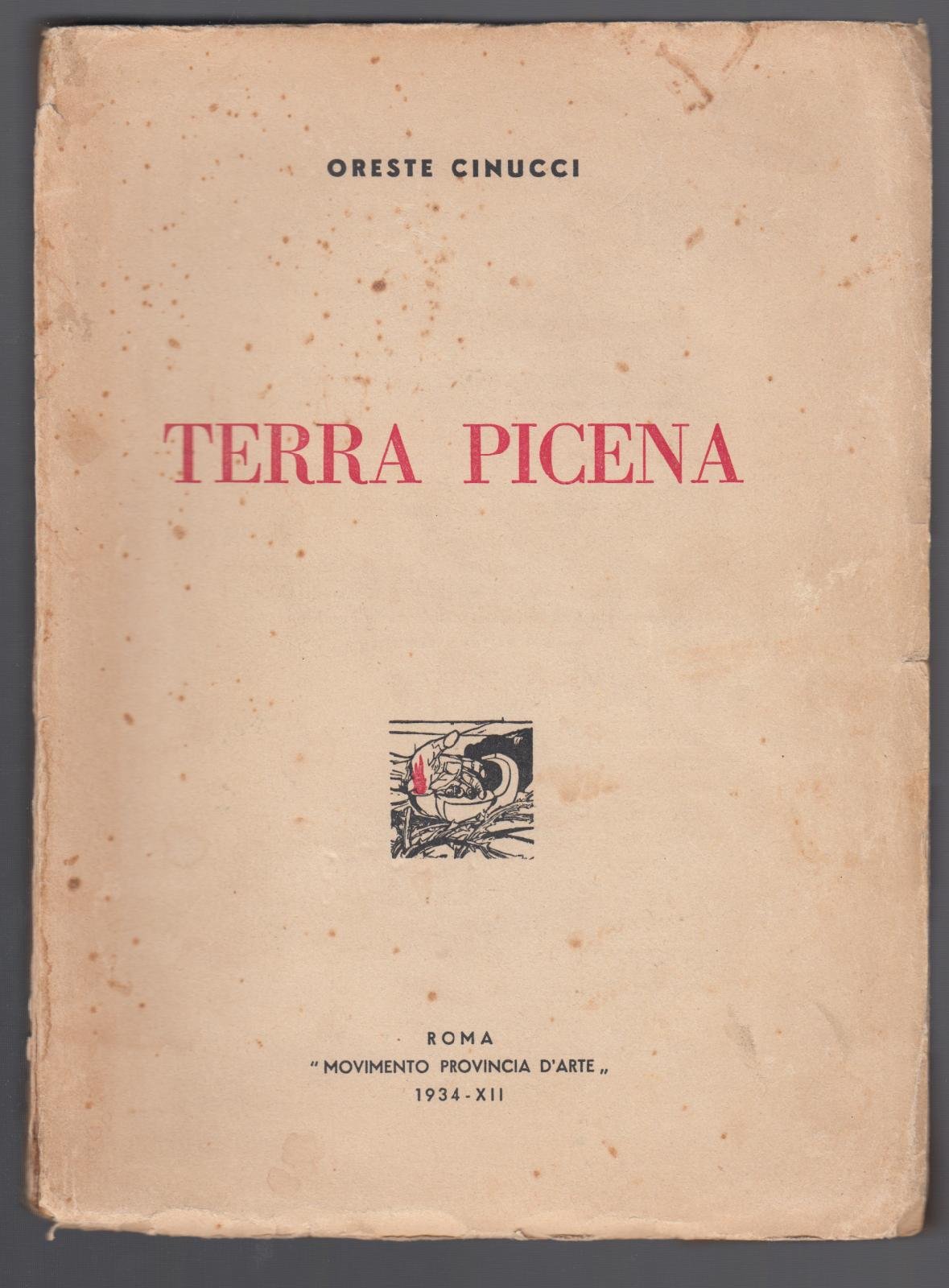 ORESTE CINUCCI TERRA PICENA 30 ILLUSTRZIONI FUORI TESTO ROMA MOVIMENTO PROVINCIALE D'ARTE 1934 COPERTINA EDITORIALE MORBIDA CON PICCOLE MACCHIE E PIEGHE AI MARGINI INTERNO IN BUONO STATO ALCUNE MACCHIE, TAGLI IRREGOLARI N. PAG. 239 CM. 23 X 17 QUARTA DI COPERTINA CON ALCUN STRAPPI AI MARGINI.