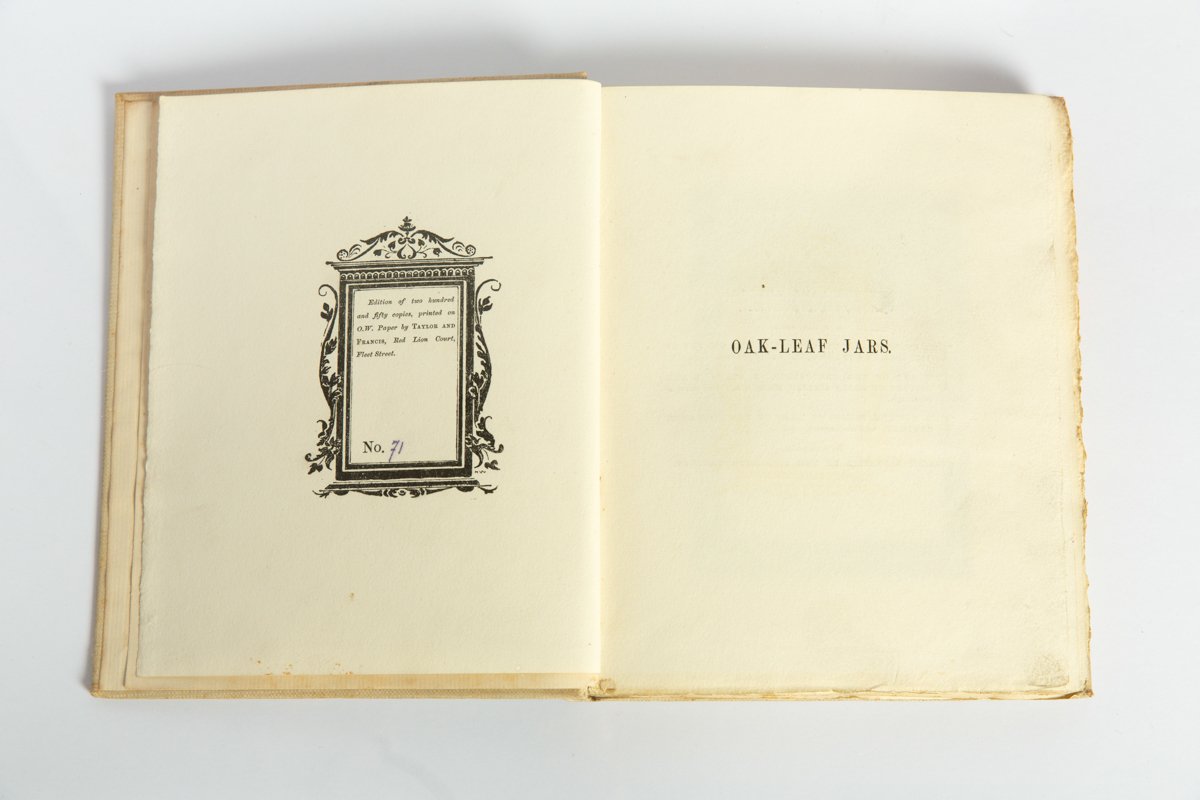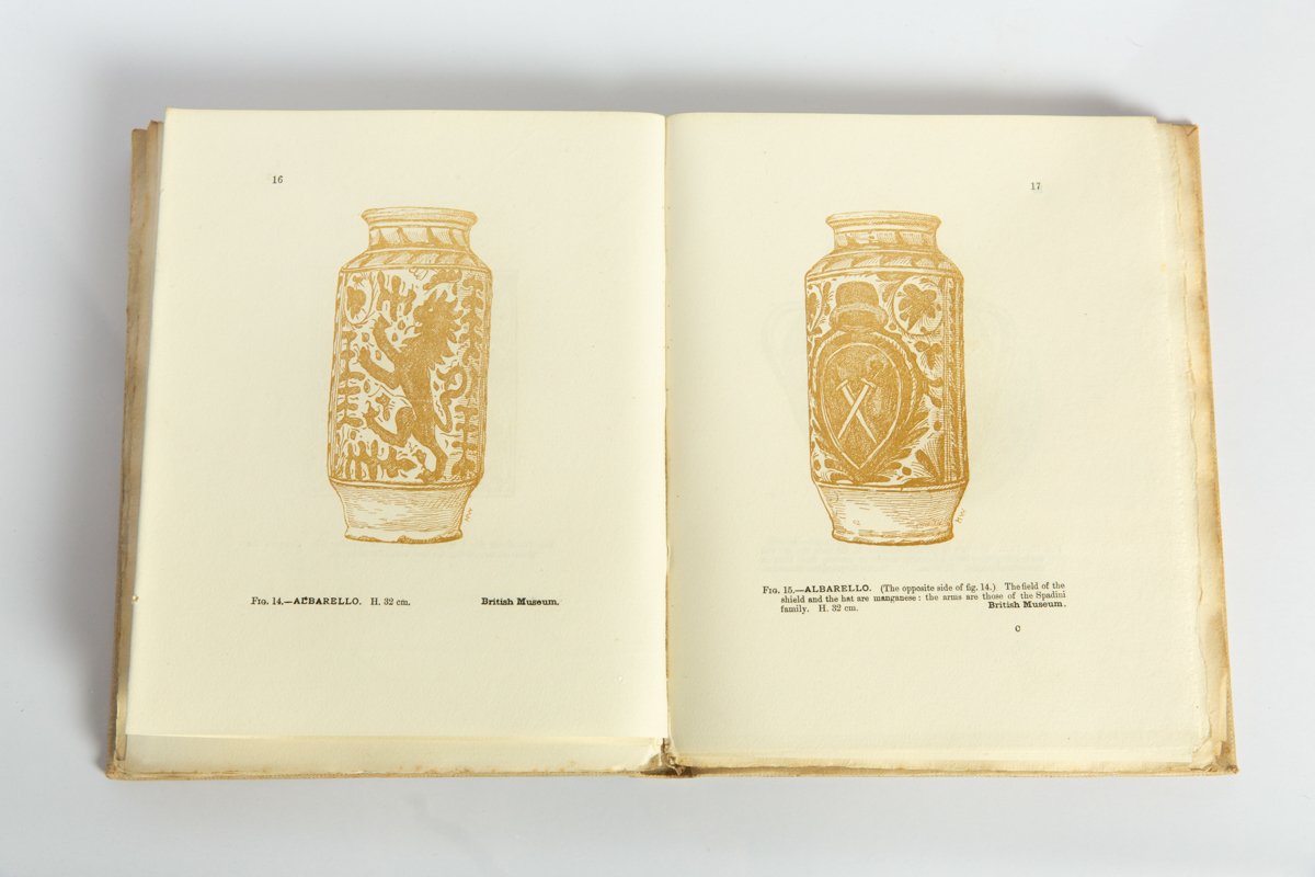 8°, mm 210x170, pp. 92, con numerose illustrazioni a colori. Legatura in piena tela editoriale, ottimo esemplare, parzialmente intonso. Tiratura di 250 copie, nostra numero 71, stampate su carta Taylor and Francis. Frontespizio in rosso e nero entro bordura silografica. Le tavole raffigurano vasi di maioliche, le restanti boccali o dettagli di ornamenti. Non comune. Il volume appartiene a una collezione di monografie pubblicate dal grande libraio inglese Bernard Quaritch e dedicate alle ceramiche antiche, tutte illustrate dal pittore preraffaellita e collezionista d'arte Henri Wallis. . *** TUTTI I NOSTRI LIBRI SONO VISIBILI PREVIO CONTATTO MAIL O TELEFONO NELLA NUOVA SEDE DI MILANO: LIBRERIA COSMOPOLIS, VIA JOMMELLI, 22. ***