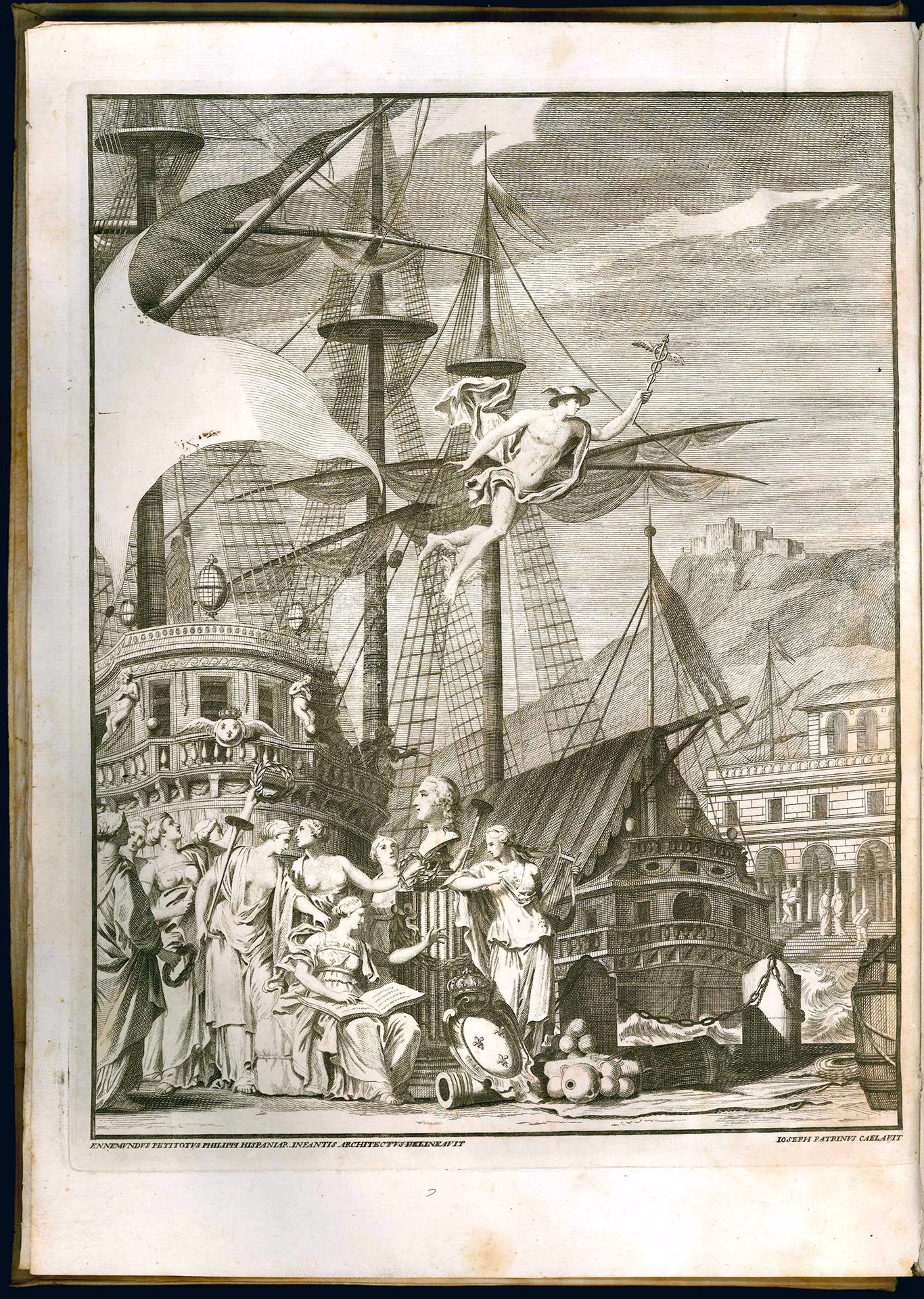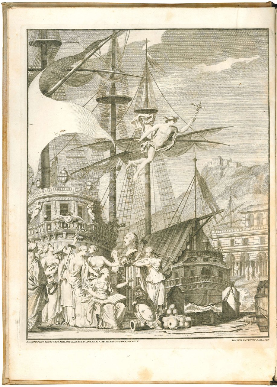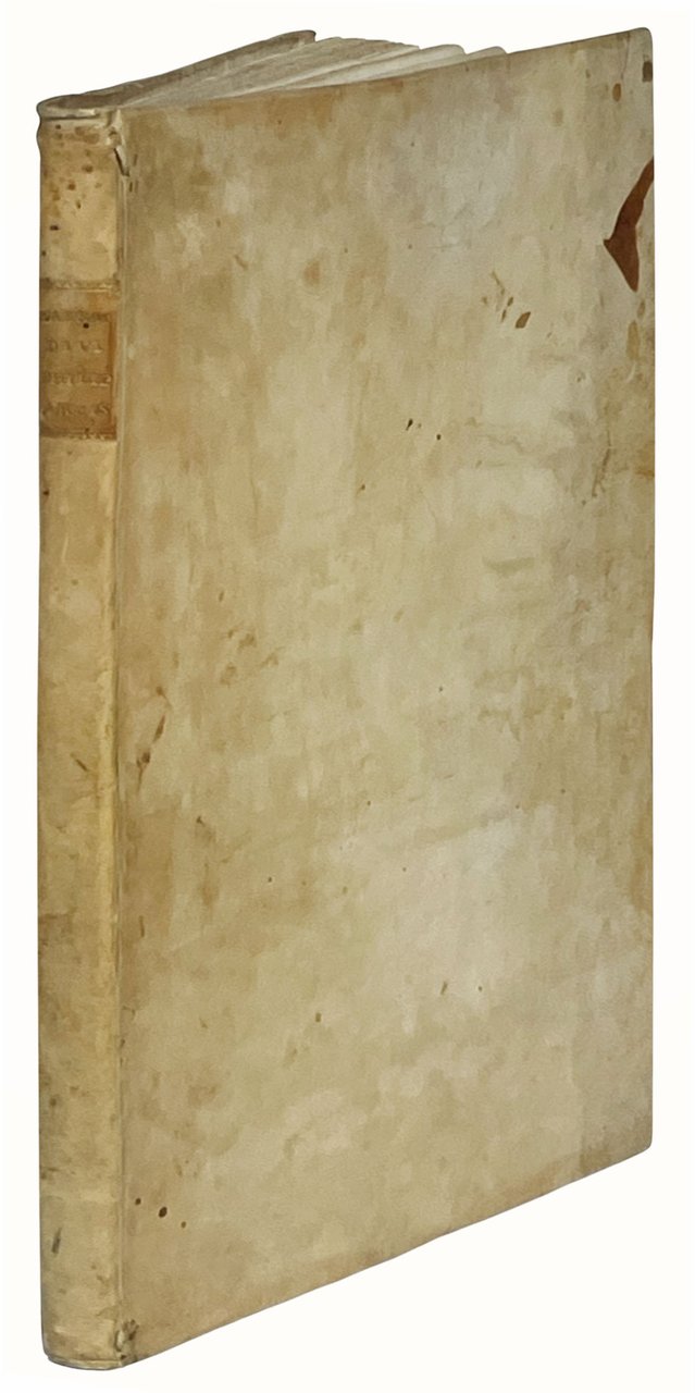 In folio grande (mm. 386x277). Pp. [14, inclusa l'antiporta incisa], I-IV, [2], V-XII, 96, [8]. Segnatura: [π]6 a-b4 A-N4. Posta a fronte della bellissima antiporta, incisa da Giuseppe Patrino su disegno di Ennemond Petitot e raffigurante galeoni francesi che approdano vittoriosamente a Port Mahon, si trova la dedica al re di Francia (“Ludovico Adamato Galliarum et Navarrae regi christiano augusto piae felici victori ob minorem fortissimanque balearium expugnatam musarum epicinia”) accompagnata dallo stemma reale impresso in rame al centro. L'apparato illustrativo include poi una vignetta al frontespizio, una pianta a piena pagina del forte di S. Filippo a Mahon (c. a4v), 4 testatine, 4 finalini e 6 iniziali: il tutto inciso in rame da Giuseppe Patrino e P.M. su disegni di Giuseppe Contenti. Pergamena rigida coeva con tassello e titolo in oro al dorso (piccole macchie sparse). Macchie marginali su alcune carte ai fascicoli B e C, segno di tarlo nel margine inferiore bianco, ben lontano dal testo, delle ultime trenta carte circa. Bellissima copia elegantemente impressa su carta grande.
