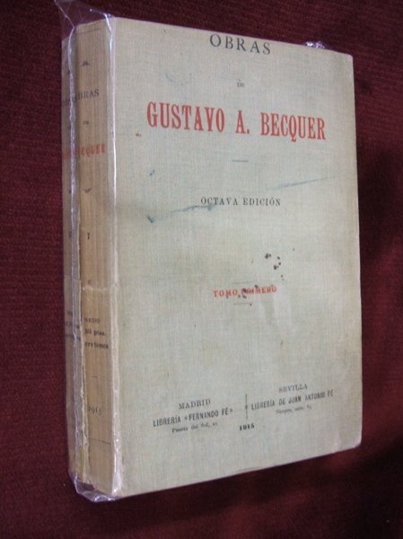 BECQUER, Gustavo Adolfo Obras de --- (DOS VOLUMENES) Tomos primero y segundo. Fe. Madrid y Sevilla 1915 8ª ed. 2 vols. con 304 y 336 p. (17 cm) Rustica. Retrato autor. Corto de margen superior. Biografia - Leyendas - Desde mi celda - cartas literarias. N2 (Ref.7305) poesia española narrativa romanticismo cuentos