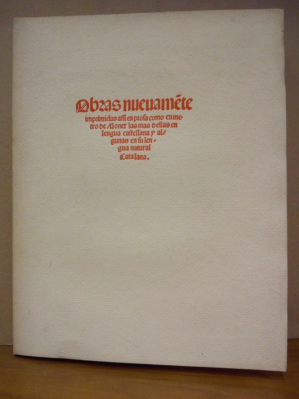 [EDICION FACSIMIL DEL ORIGINAL IMPRESO EN "BARCELONA: POR CARLOS AMOROS, 1528", CUYO UNICO EJEMPLAR SE ENCUENTRA EN LA BIBLIOTECA NACIONAL DE MADRID / La edición ha sido dirigida por ANTONIO PEREZ Y GOMEZ].- Valencia: Tipografía Moderna, 1951.- [1 h. de justificación de la tirada] + 52 hojas sin numerar del facsímil + [1 h. de colofón]; Folio (35 x 25 cm).; Gran papel de 34 Kg., sin cortar, con amplios márgenes y con todas sus barbas; Magnífica impresión a dos tintas en letra gótica.- EDICION LIMITADA DE 300 EJEMPLARES. DE ELLOS 40 SIN NUMERAR. EL RESTO NUMERADOS DEL 1 AL 260. POSEEMOS LOS Nos. 60, 61 y 165. CONFECCIONADO CON PAPEL "PHENIX" DE LA GELIDENSE, S. A. EXPRESAMENTE PREPARADO PARA ESTA EDICION. RARISIMO LIBRO DE ESTE POCO DIFUNDIDO AUTOR CATALAN.* En excelente estado de conservación. LITERATURA ESPAÑOLA Y FILOSOFÍA DE LOS SIGLOS XVI Y XVII