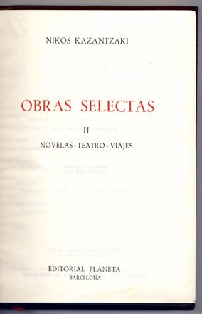 Obras Selectas II. Novelas (El Jardín de las Rocas y Vida y hechos de Alexis Zorba). Teatro (Teseo, y Melisa). Viajes (Del Monte Sinai a la Isla de Venus).