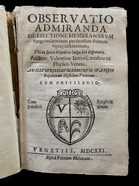 Observatio admiranda de eiectione membranarum sanguinolentarum per secessum formam viperae referentium, ubi de fluxu hepatico larga fiet disputatio. Auctore, Valentino Iuniori, medico ac physico Veneto. Ad Illustrissimum Dominum in Anem Basadonam