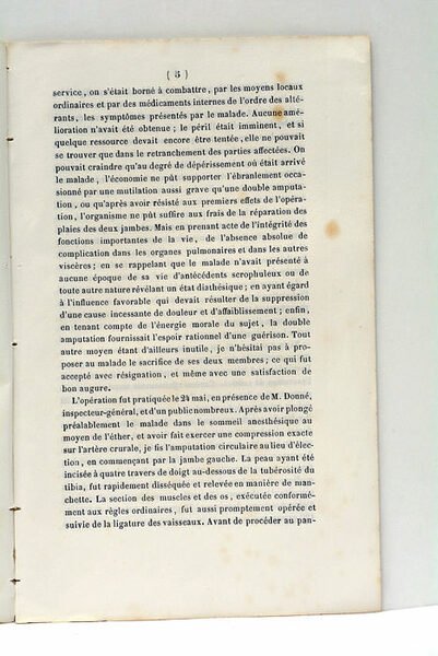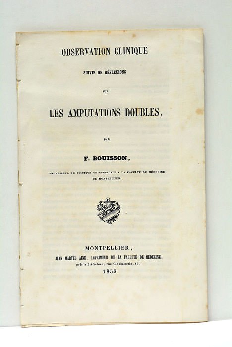 15 pages. (21x14 Cm). Broché. Rousseurs. Feuillets un peu déreliés. Étude sur les amputations avec des considérations sur les propriétés anesthésiques de l'ether et du chloroforme, récemment découvertes. Chirurgie.