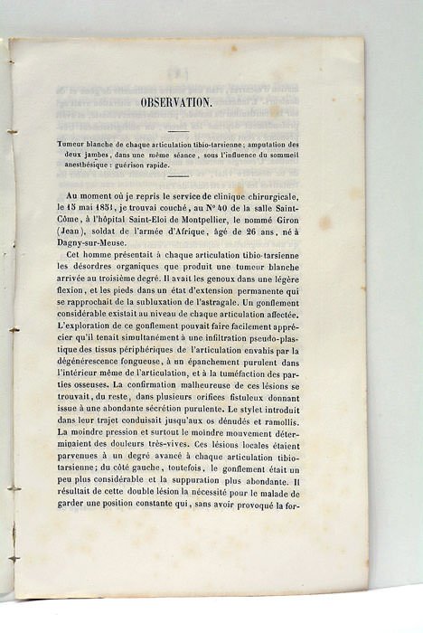 Observation clinique suivie de réflexions sur les amputations doubles.