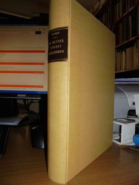 HAVEN, Marc (pseud. du Dr. Lalande). Paris, Dorbon - Aîné, s.d. [1912]. Le Maître inconnu : Cagliostro : étude historique et critique sur la haute magie. In - 8° grande, tela con titolo in oro entro tassello al dorso. (4), 330, (2) pp. con 18 illustrazioni, ritratti, vedute e facsimili di documenti n.t. e f.t. Le pp. 309 - 330 contengono una bibliografia ragionata in materia. Dorbon, Bibliotheca esoterica. 2101: << Selon M. Haven (pseudonyme du Dr. Lalande) Cagliostro fut un apôtre et un martyr: abandonné par les siens, il oublia non pour pouver leur pardonner; trompé par celle qui avait choisie, il la sauva sut cacher sa faute et l' entourer d' égards; persecuté, il rendit toujours le bien pour le mal >>. In fine: publications de la Librairie Dorbon-Ainé, 23 pp. Bell' esemplare. Neg. Mass. mob. 1