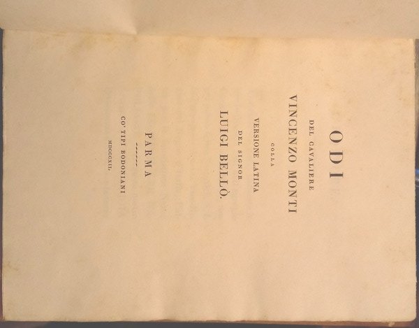 Odi del cavaliere Vincenzo Monti colla versione latina del signor Luigi Bellò