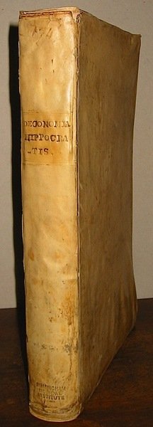 Folio (cm. 33,8), 4 cc.nn., 694 pp., 1 c.nn. Ritratto dell’A. al verso del frontis. Marca tipografica al frontis. e sull’ultima carta. Testo su due colonne. Legatura antica in piena pergamena con titolo ms. al ds. Minime tracce di usura alle cuffie e ai margini esterni. Frontis. con piccole macchie chiare e due scritte di appartenenza sbiadite. Un lieve alone al margine inferiore bianco, leggermente più accentuato sulle ultime cento pagine. Nel complesso, bell’esemplare. Provenienza: Birmingham Medical Institute (scritta al piede del ds. e piccoli timbri sbiaditi al frontis. e al margine di alcune carte). Opera fondamentale per la conoscenza dei vocaboli ippocratici, basata sullo studio degli antichi testi di medicina. Wellcome, 2334.