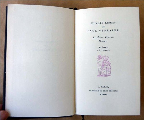 Oeuves Libres de Paul Verlaine. Les Amies. Femmes. Hombres. Préface d'Etiemble.
