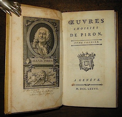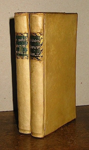 12mo (cm. 12), 2 Voll., 3 cc.nn. compreso il ritratto dell’A., 198 pp.; 2 cc.nn., 199 pp. Ottime legature coeve in piena pergamena con titolo e fregi oro su tassello in pelle verde al ds. Tagli colorati a spruzzo. Ottimo esemplare.