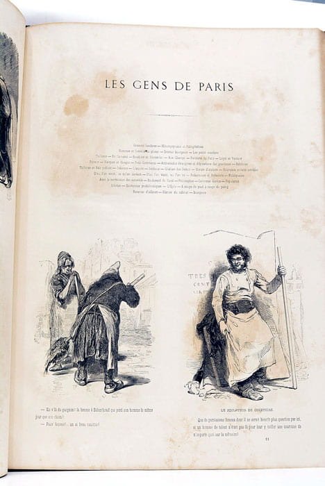70 feuillets. (43x30 Cm). Cartonage vert. Édition spéciale comprenant: Études De Mœurs Contemporaines (Les Enfants Terribles, Traduction En Langue Vulgaire, Les Lorettes, Les Actrices, Les Fourberies De Femmes en matières de sentiments, Clichy, Paris le soir, Le carnaval à Paris, Paris le matin, Les étudiants de Paris suivies de l'Œuvre complète publiée dans la Diable à Paris sous ce titre " Les gens de Paris " comprenant 520 dessins avec leurs légendes. Rousseurs.