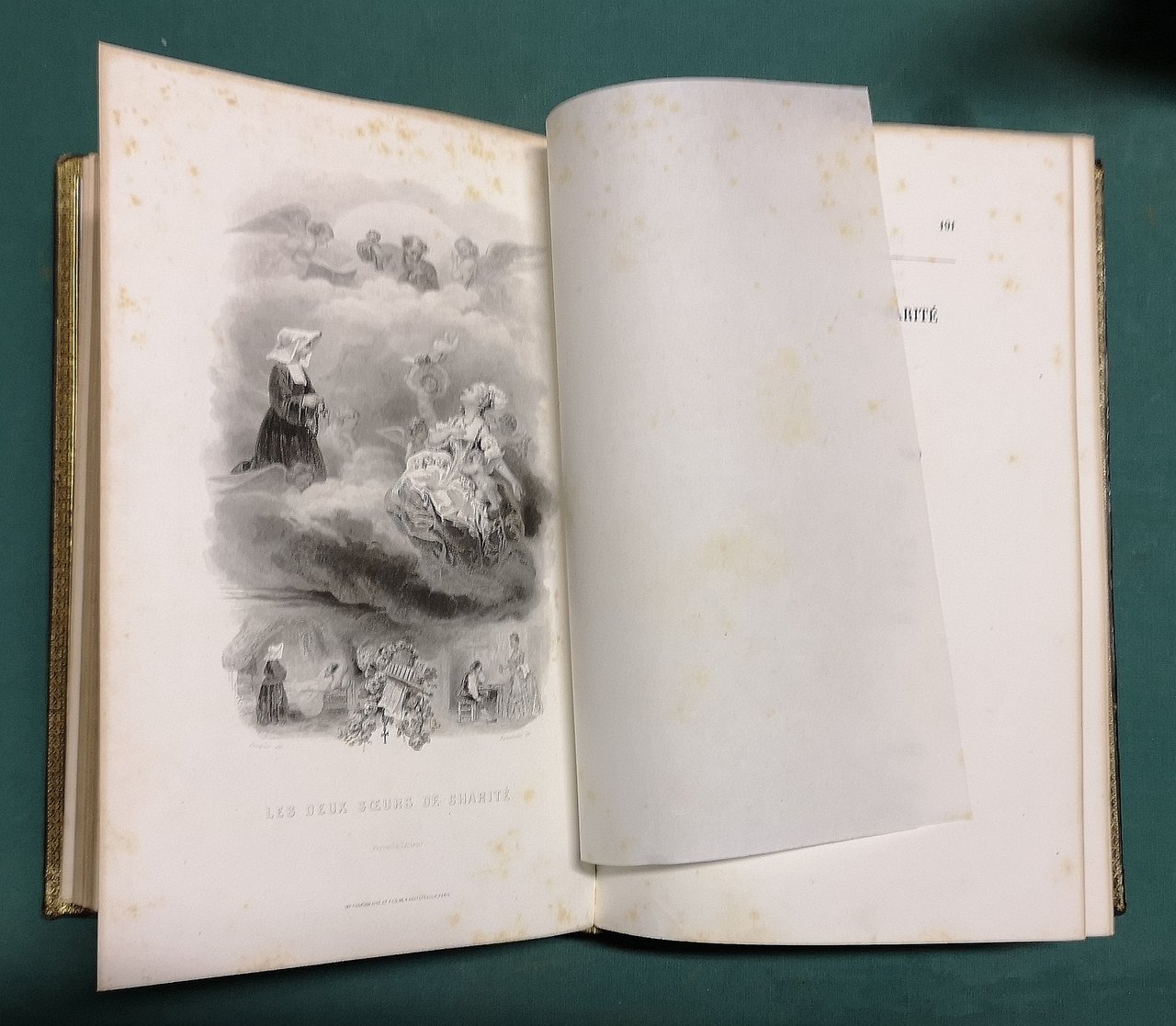 >2 voll. in-8 grande, pp. XL, 411, (1) con ritratto dell'autore in antiporta, 2 tavole ripiegate di lettere autografe e 25 tavole f.t. protette da velina; pp. 401, 1 tavola in antiporta e 26 tavole f.t. protette da velina. Superba legatura coeva in p. marocchino blu, piatti ornati da cornici e fregi floreali, titolo e fregi in oro sul dorso a nervi, doppie dentelles e tagli dorati. Seconda edizione identica a quella del 1847. Buon esemplare, fresco salvo sporadiche e lievi fioriture. Carteret III 84; Vicaire I, 412-414; Brivois, 53-55.
