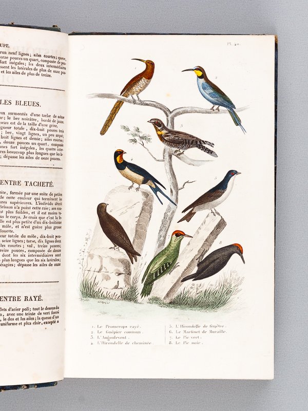 1 vol. in-8 reliure demi-basane bleue, P. Duménil, Paris, 1835, 427 pp. avec 17 planches en couleurs Tome neuvième seul, consacré aux oiseaux. Etat satisfaisant (rel. frottée, anciens cachets d'institution religieuse, étiquette de cote en faux-titre, mors et au dos en queue).