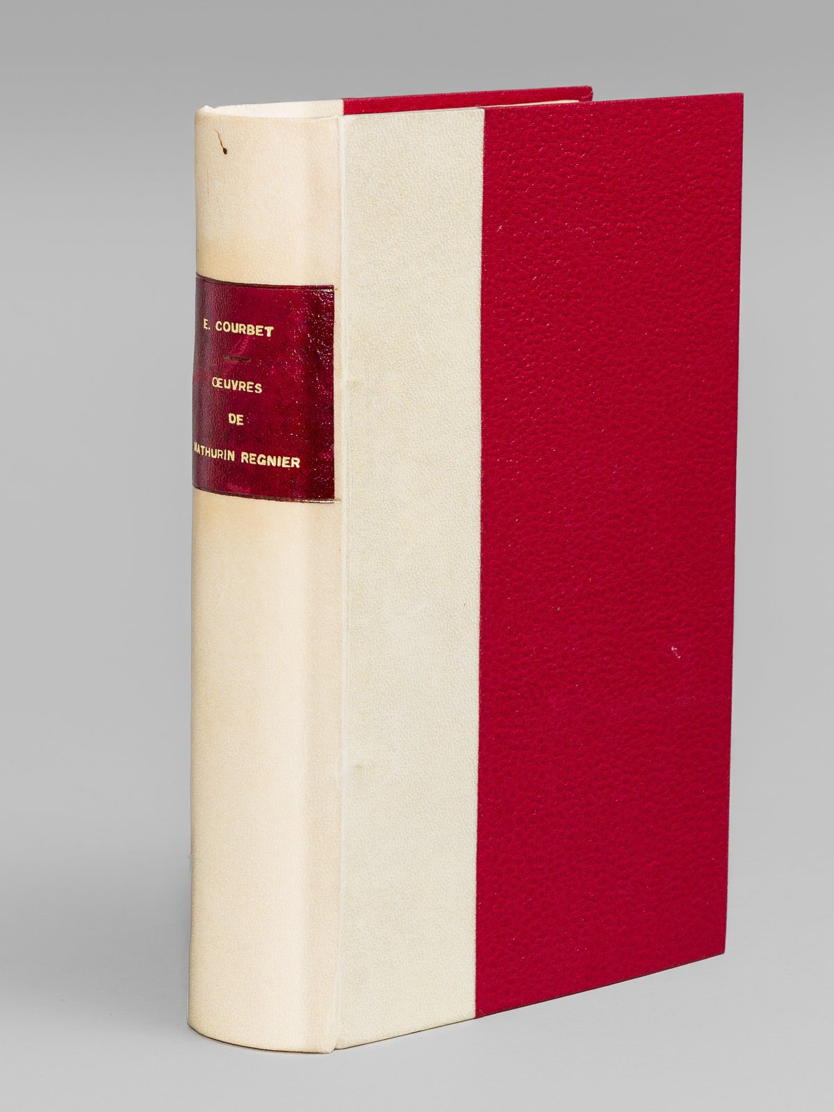 Accompagnées d'une Notice biographique & bibliographique, de Variantes, de Notes, d'un Glossaire & d'un Index, par E. Courbet, 1 vol. petit in-8 reliure postérieure demi-vélin blanc, couvertures conservées, collection Lemerre, Classiques Français, Alphonse Lemerre, Paris, 1875, CVII pp., 1 f., 325 pp. et 1 f. n. ch. Bon exemplaire sur beau papier vergé de hollande. Le poète satirique Mathurien Régnier (1573-1613) rédigea lui-même son épitaphe : "J'ai vescu sans nul pensement, Me laissant aller doucement, A la bonne loy naturelle, Et si m'estonne fort pourquoi, La mort osa songer à moi, Qui ne songeay jamais à elle". Bon exemplaire (ex-libris en garde). Vicaire, I, 768