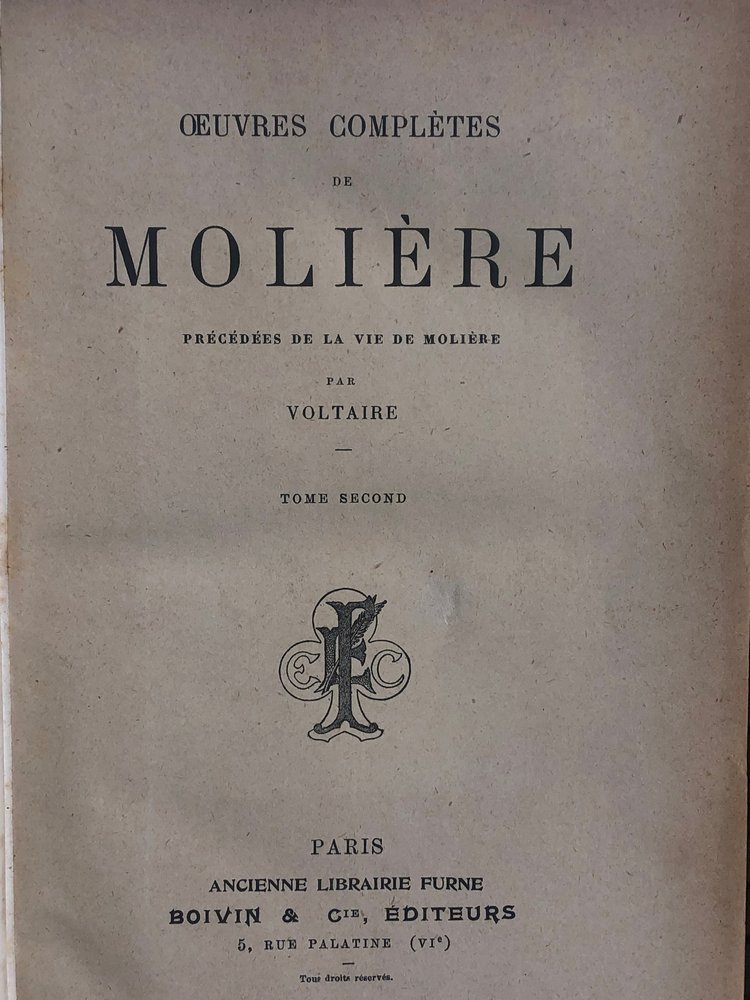 Oeuvres complètes de Molière précédées de la vie de Molière par Voltaire. Tome premier et tome second. 2 vols. ens.