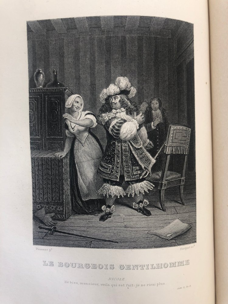 - A two volume set of Moliere's complete theatrical works. French, playwright and actor Molière is considered by many as one of, the greatest masters of comedy in Western literature. Some of, his best known works are The Misanthrope, The School for Wives, The Miser and The Bourgeois Gentleman. In elegant Art Nouveau, binding. Collated complete.