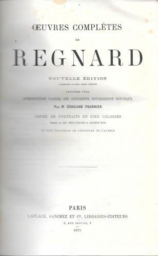 Oeuvres complètes, nouvelle édition augmentée de deux pièces inédites précédée d'une introduction d'apres des documents entierement nouveaux par M. Edouard Fournier, ornée de portraits en pied colories, dessines par Emile Bayard et Maurice Sand et d'un fac-simile de l'écriture de l'auteur