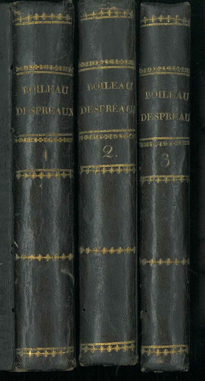 3 volumi, 15 cm, rilegatura coeva in mezza pelle, titolo e fregi in oro al dorso, tagli colorati, segnalibro; pp. xxxii, 340; viii, 343; vii, 312, non censito nel catalogo della BNF