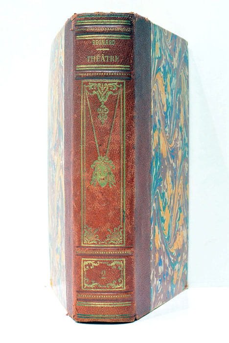 Tome II seul. 431 pages. 4 freuillets. 1 illustration hors du texte. (19 x12cm). Demni-percaline. Dos à nerfs orné avec ornements, tomaison et titre en lettres dorées.Couverture légèrement salie et dos un peu frottée. Coins émoussés. Cet ouvrage, le deuxième tome des œuvres de Regnard, édité sans date à Paris, bénéficie de l'introduction éclairée d'Édouard Fournier, érudit du XIXe siècle réputé pour ses recherches approfondies sur la littérature française. En se basant sur des documents inédits, Fournier offre aux lecteurs une nouvelle perspective sur l'œuvre de Regnard, dramaturge du XVIIe siècle dont la plume rivalise avec celle de Molière. Cette édition se distingue par son approche historique, enrichissant la compréhension des textes de Regnard à travers le prisme des découvertes de Fournier. Pages légèrement brunies avec quelques taches et signes de rousseurs éparses. Illustration en couleurs hors du texte. Tome II seul.