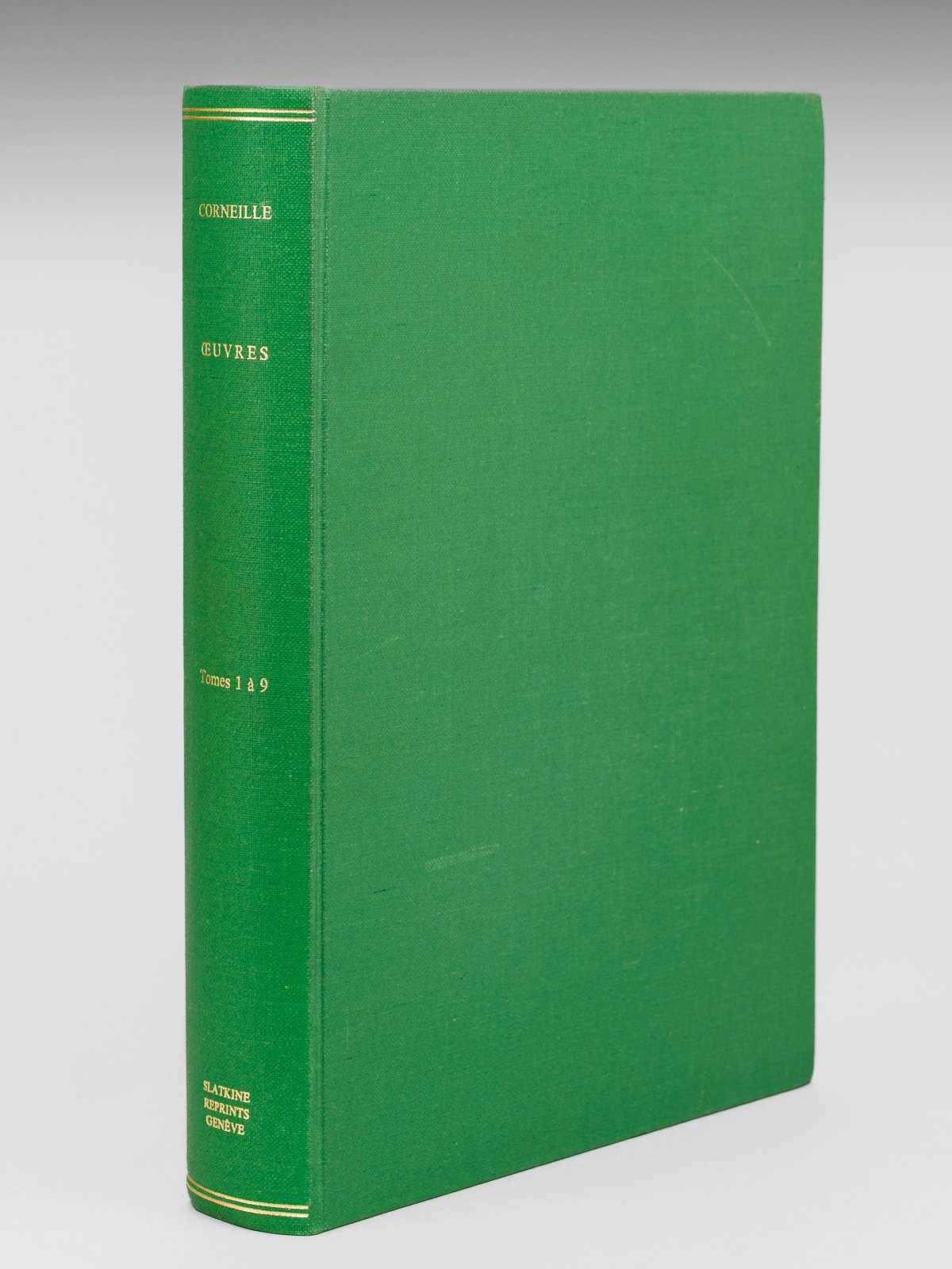 1 vol. in-folio cartonnage bradel éditeur vert, Slatkine Reprints, Genève, 1970, 763 pp. Bel exemplaire en parfait état de cette réimpression des 9 tomes de l'édition de Paris de 1758 des oeuvres de Thomas Corneille.