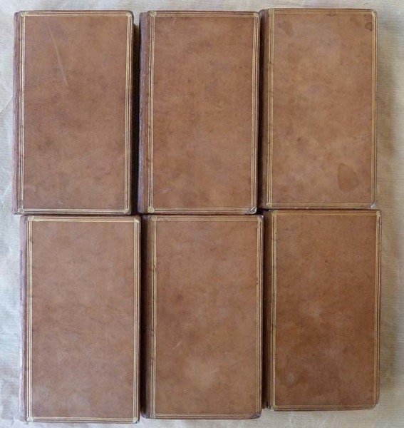 Ensemble de 6 volumes de format in 12 de Vol.I: Le bélier, Conte; Poésies; 2ff.; 335 pp. Vol.II:Histoire de Fleur d'Epine, Chansons; 2ff.; 318 pp.Vol. III: Les Quatre Facardins; 2ff.; 318 pp. Vol. IV: Oeuvres Diverses, Lettres et Epîtres, Zéneyde; 2 ff.; 383 pp. Vol. V: Mémoires du Comte de Grammont, 1ère partie; XXXVII pp.; 315 pp. Vol. VI:Mémoires du Comte de Grammont 2ème partie et dernière; 2ff.; 340 pp. Reliure uniforme de l'époque en pleine basanetabac; dos lisse , caissons richement ornés et dorés; pièces de titre en maroquin rouge, titre doré; triple filet doré sur les plats; tranches rouges. Quelques rousseurs dans le texte; gardes brunies; quelques coins marqués, dans l'ensemble très frais. Exemplaire désirable. Voir les photos.