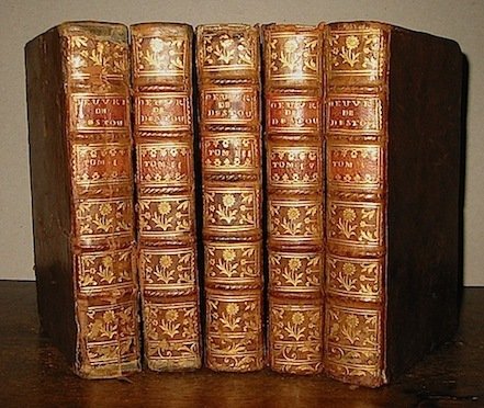 12mo (cm. 16,3), 10 Tomi legati in 5 Volumi, 6 cc.nn., XXIII-264-320 pp., 2 cc.nn., 223 pp. con antiporta incisa f.t.; 2 cc.nn., 279 pp., 2 cc.nn., 226 pp.; 2 cc.nn., 271 pp., 2 cc.nn., 264 pp.; 2 cc.nn., 263 pp., 2 cc.nn., 244 pp.; 2 cc.nn., 239 pp., 2 cc.nn., 257(7) pp. Frontis. in rosso e nero. Legature coeve in piena pelle con nervi, ricchi fregi e doppia scritta in oro al ds. (cuffie superiori restaurate o con mancanze, alcune abrasioni). Tagli marmorizzati. Ottimi interni.