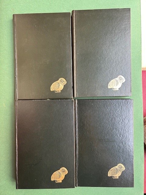 4 voll. in-8°, pp. XXIX, 159; 170; 149, 257, testo in greco e latino, legatura editoriale in pelle blu, titlo in oro al dorso e civetta in oro al piatto superiore.