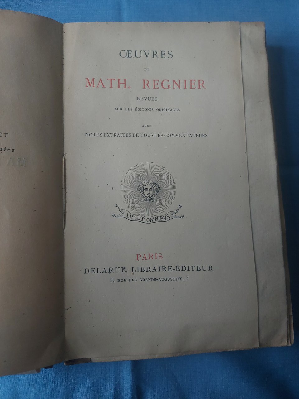 Mathurin Régnier (1573-1613) est un poète satirique français reconnu pour ses vers mordants et son style libre. Ses Œuvres ont été publiées par l’éditeur Delarue au XIXe siècle, rassemblant ses satires, épîtres et autres poèmes. Inspiré par Horace et Rabelais, il critique avec verve les travers de son époque. Son écriture, à la fois vive et expressive, marque une transition entre la Pléiade et le classicisme. Son influence perdure dans la tradition satirique française.