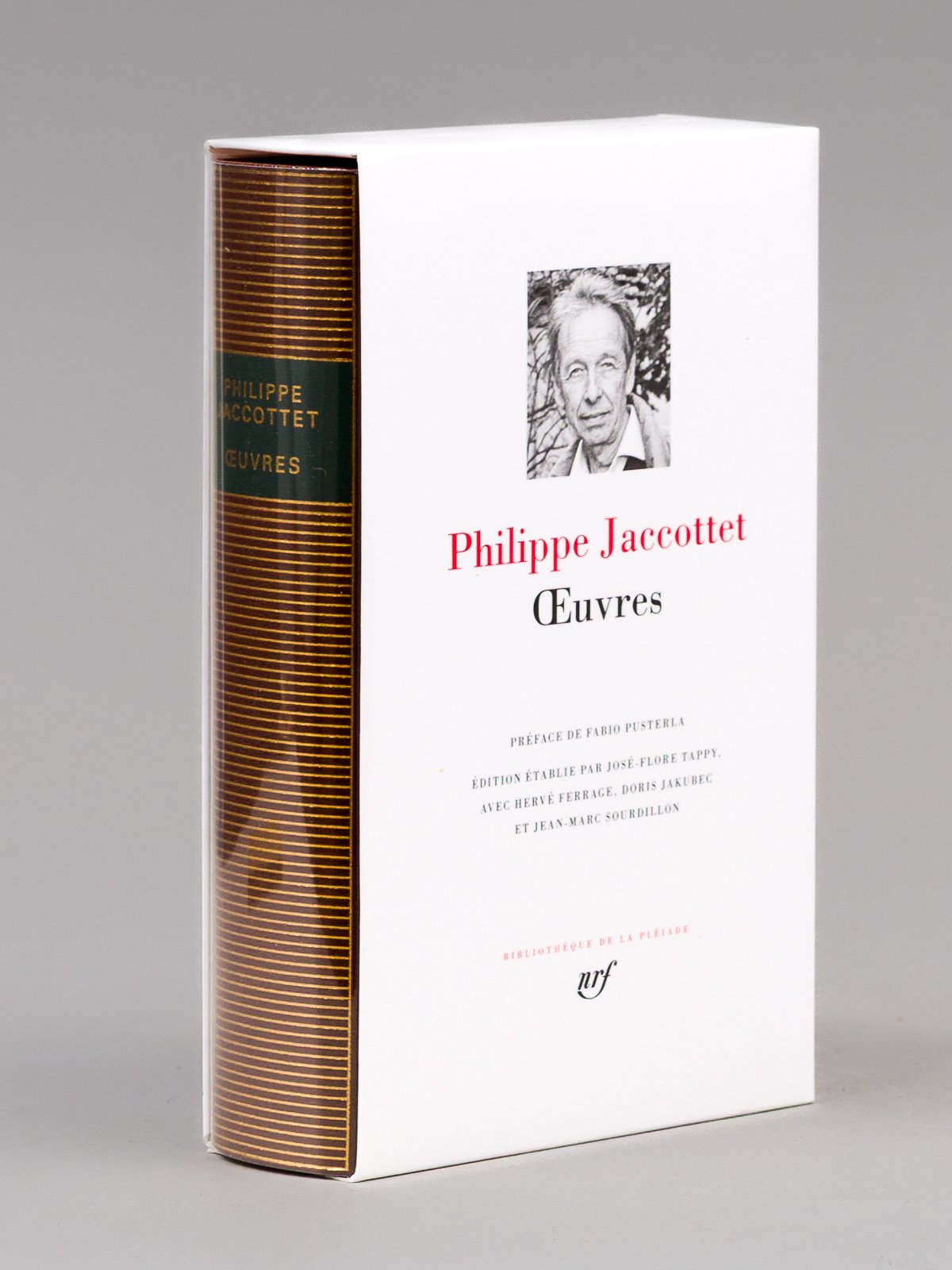 1 vol. in-12 reliure éditeur plein cuir brun sous jaquette rhodoïde sous étui imprimé, Édition de José-Flore Tappy avec la collaboration d'Hervé Ferrage, Doris Jakubec et Jean Marc Sourdillon. Préface de Fabio Pusterla, Bibliothèque de la Pléiade, NRF, Gallimard, Paris, 2014, LXXXIII-1626 pp. Bel exemplaire. Contient : L'Effraie et autres poésies - Observations, 1951-1956 - La Promenade sous les arbres - L'Ignorant - L'Obscurité - Éléments d'un songe - La Semaison, carnets 1954-1967 - Airs - Leçons - Paysages avec figures absentes - Chants d'en bas - À travers un verger - À la lumière d'hiver - La Semaison, carnets 1968-1979 - Les Cormorans - Beauregard - Pensées sous les nuages - Cahier de verdure - Libretto - Après beaucoup d'années - La Semaison, carnets 1980-1994 - La Semaison, carnets 1995-1998 - Et, néanmoins - Nuages - Le Bol du pèlerin (Morandi) - À partir du mot Russie - Truinas - Ce peu de bruits - Couleur de terre. Appendices : Requiem - En marge des livres - Proses éparses - Deux discours.