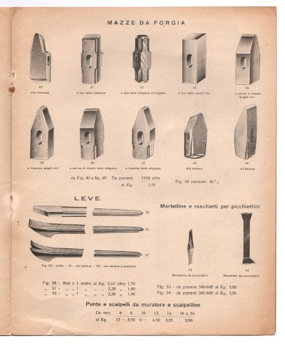 Catalogo tutto illustrato (cm 29x23) pag. 12. -- Listino prezzi anno 1935. Martelli, picozzini, ascie, articoli per lattoniere.