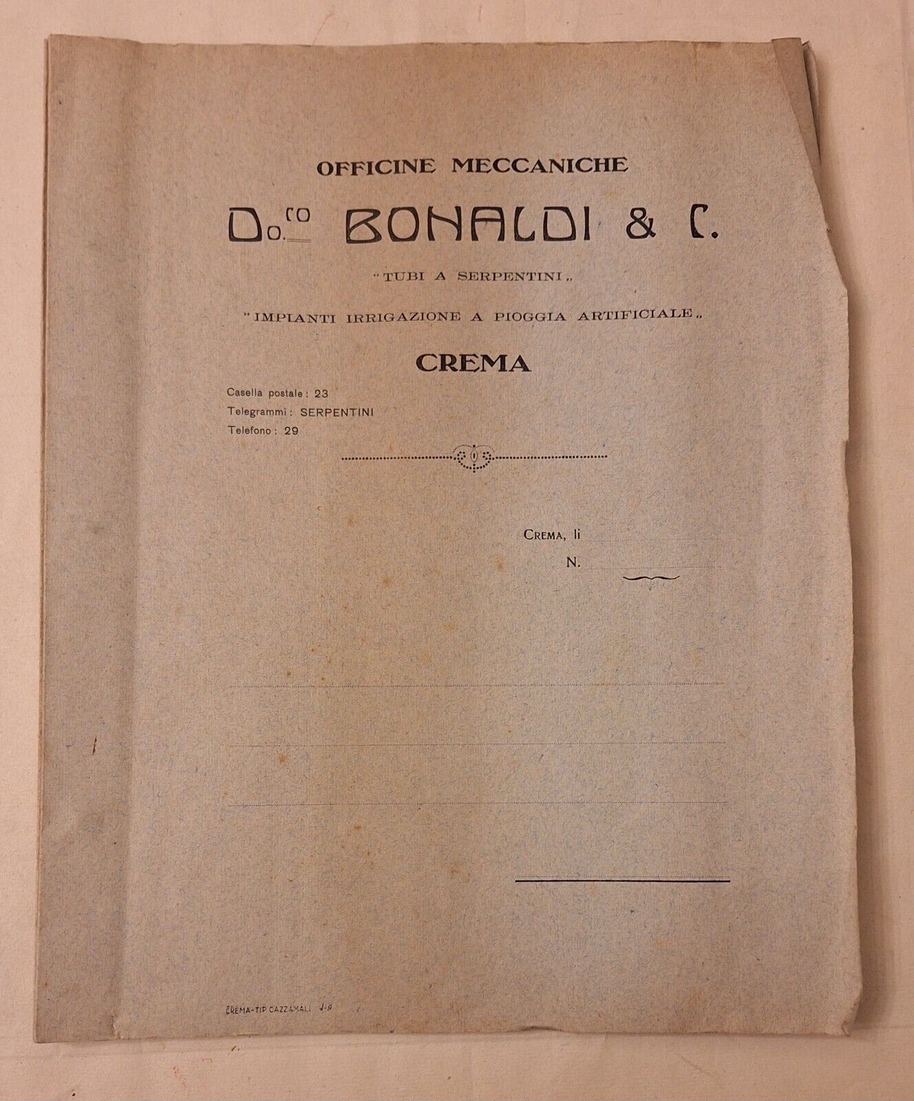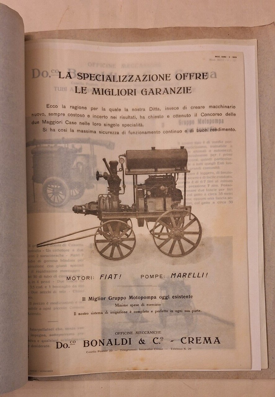 OFFICINE MECCANICHE BONALDI & c. IMPIANTI IRRIGAZIONE A PIOGGIA ARTIFICIALE In 4°, legatura editoriale, ill. in b/n, tabelle e tavole tecniche.Lievi segni alla copertina, pagine fresche e pulite.
