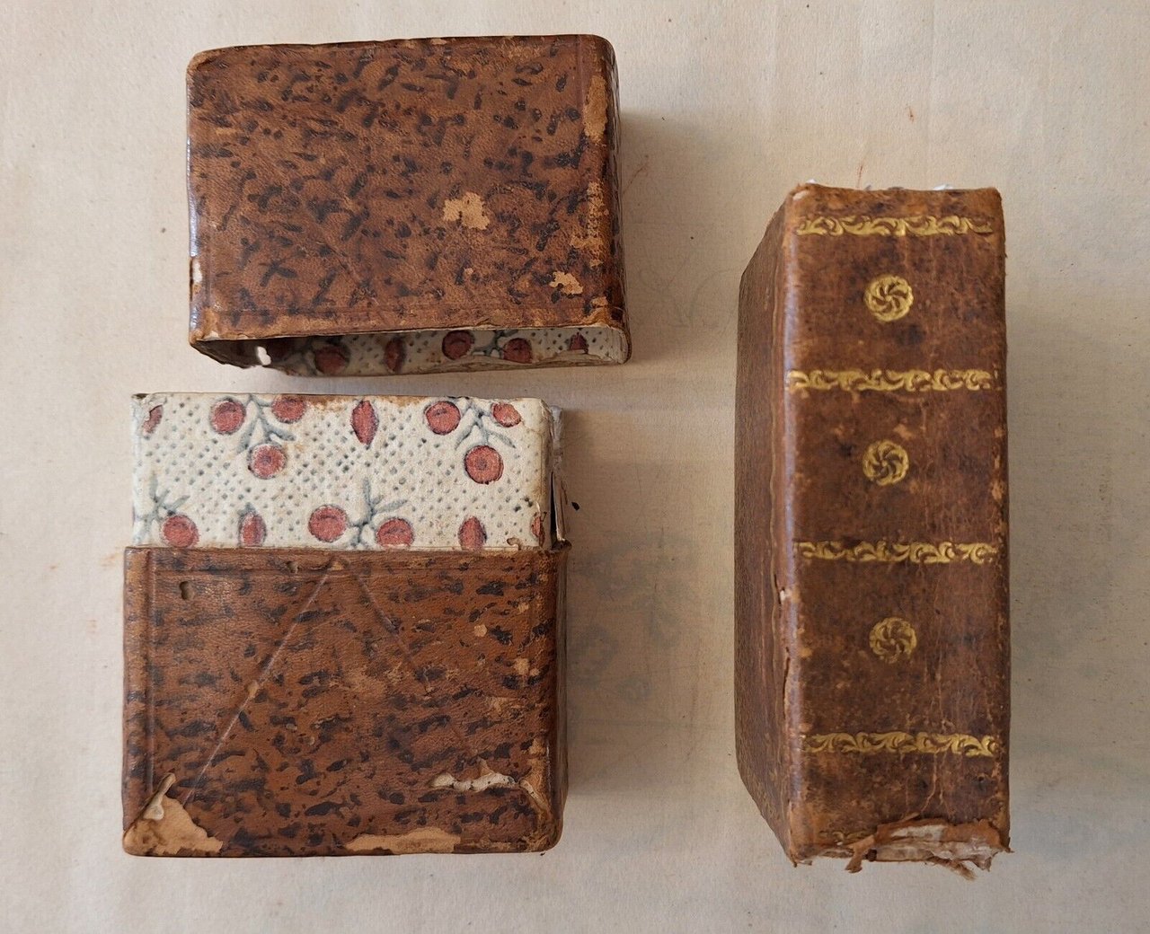OFFICIUM BEATAE MARIAE VIRGINIS PARMAE APUD FRATRES BORSI Cm. 11 x 8, pag. 480. legatura in piena pelle con fregio in oro al dorso e ai piatti, custodia cartonata, vignetta al frontespizio, capolettera ornato, 6 tavole in b/n.Lievi segni e piccola mancanza alla custodia. Piccolo tarlo ai piatti, lievissimi segni del tempo alla legatura. Lievissima allentatura, tarlo all'angolo inferiore delle ultime 3 pagine.