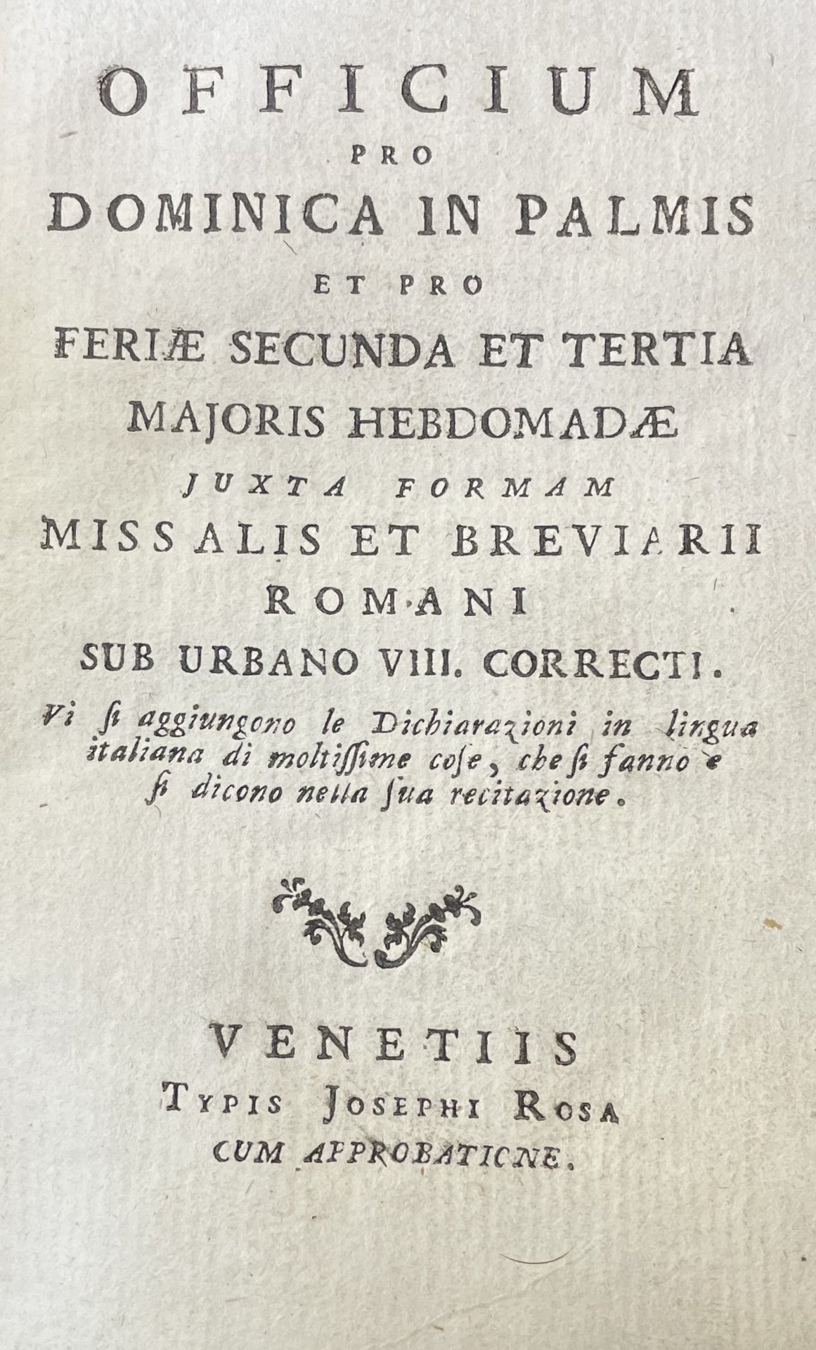 OFFICIUM PRO DOMINICA IN PALMIS ET PRO FERIAE SECUNDA ET TERTIA MAJORIS HEBDOMADAE JUXTA FORMAM MISSALIS ET BREVIARII ROMANI SUB URBANO VIII CORRECTI