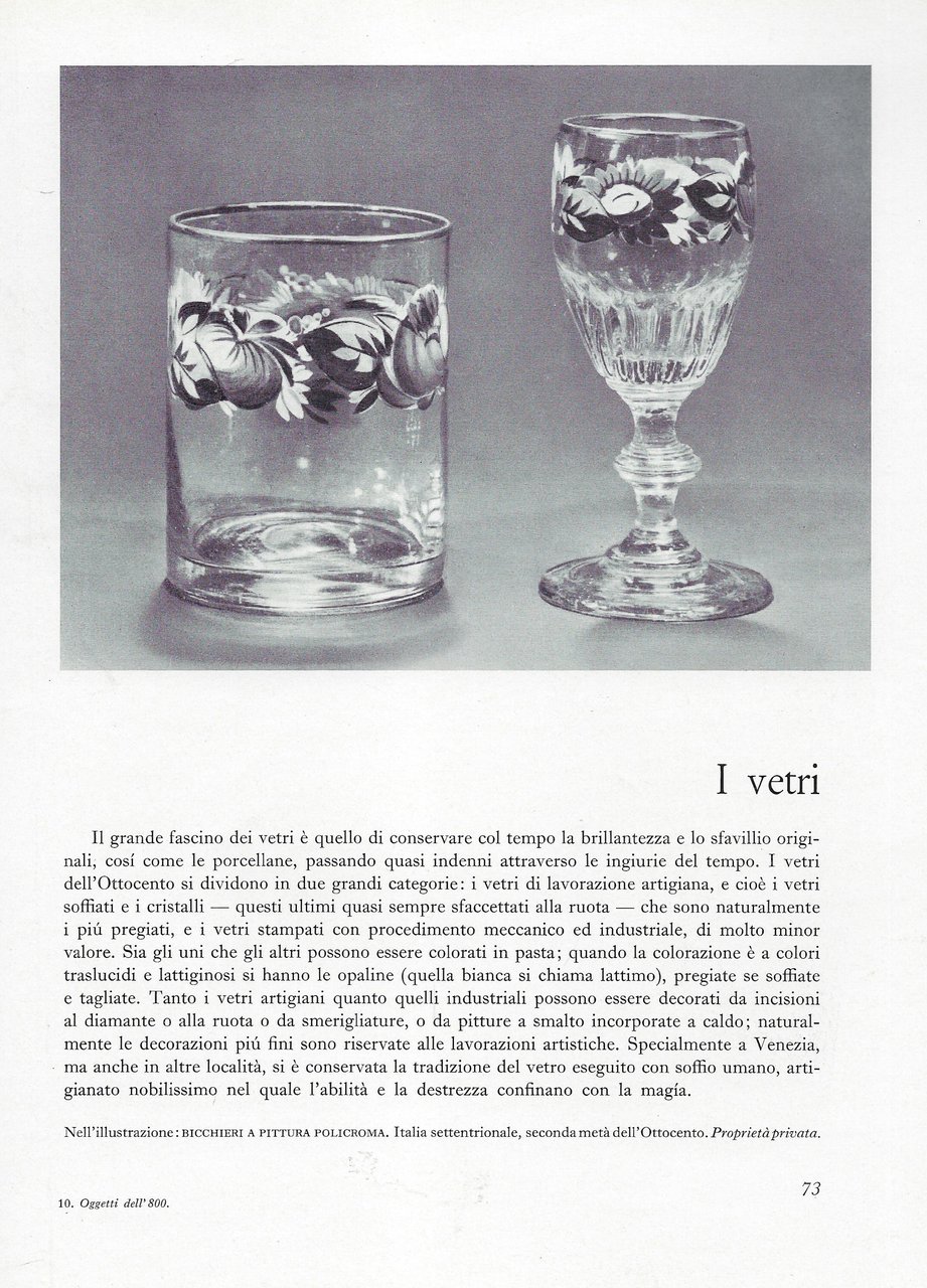 Efficace illustrazione della vita italiana dell'800: oggetti di uso quotidiano tra gli argenti, vetri, ceramiche e oggetti di varia curiosità.