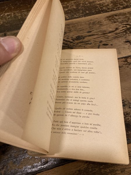 In-16°, pp. 132, (12), brossura editoriale. Ritratto dell'autore all'antiporta. Intonso; fioriture al margine interno del piatto. Buon esemplare. Unica edizione, rara, di questo curioso poemetto di fantascienza narrante un immaginario viaggio sulla Luna. Una sola copia in ICCU, alla Nazionale di Firenze.