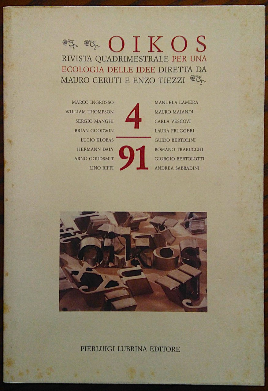 OIKOS. Rivista quadrimestrale per una ecologia delle idee diretta da Mauro Cerutti e Enzo Tiezzi. Numero 1,2,3,4, 1990-1991.