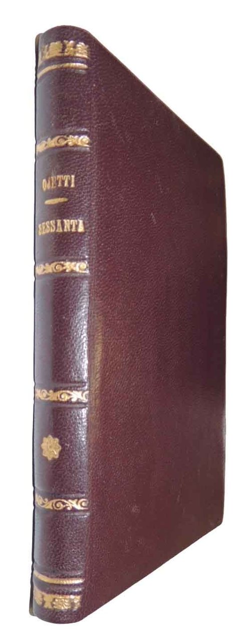 Ugo Ojetti, Sessanta, A. Mondadori Editore, s.l. (ma stampato presso le Officine Grafiche Veronesi della Arnoldo Mondadori Editore) 1943, pp. 153, cm 16, legatura di pregio in tutto marocchino con nervetti e titoli e fregi in oro al dorso. Volume impreziosito da una interessante dedica manoscritta completa di data e luogo, che occupa tutte le prime carte bianche. Minima ingiallitura della carta, lievissime fioriture ai tagli, per il resto perfetto.