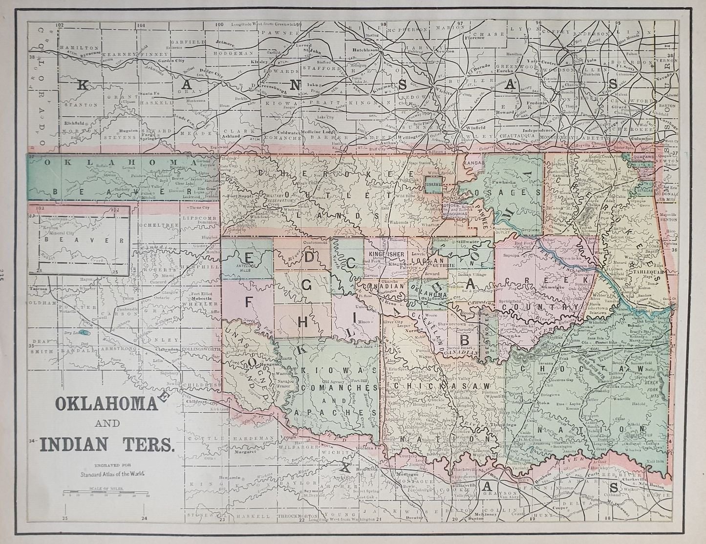 OKLAHOMA AND INDIAN TERS MAP OF THE OKLAHOMA COUNTRY IN THE INDIAN TERRITORY