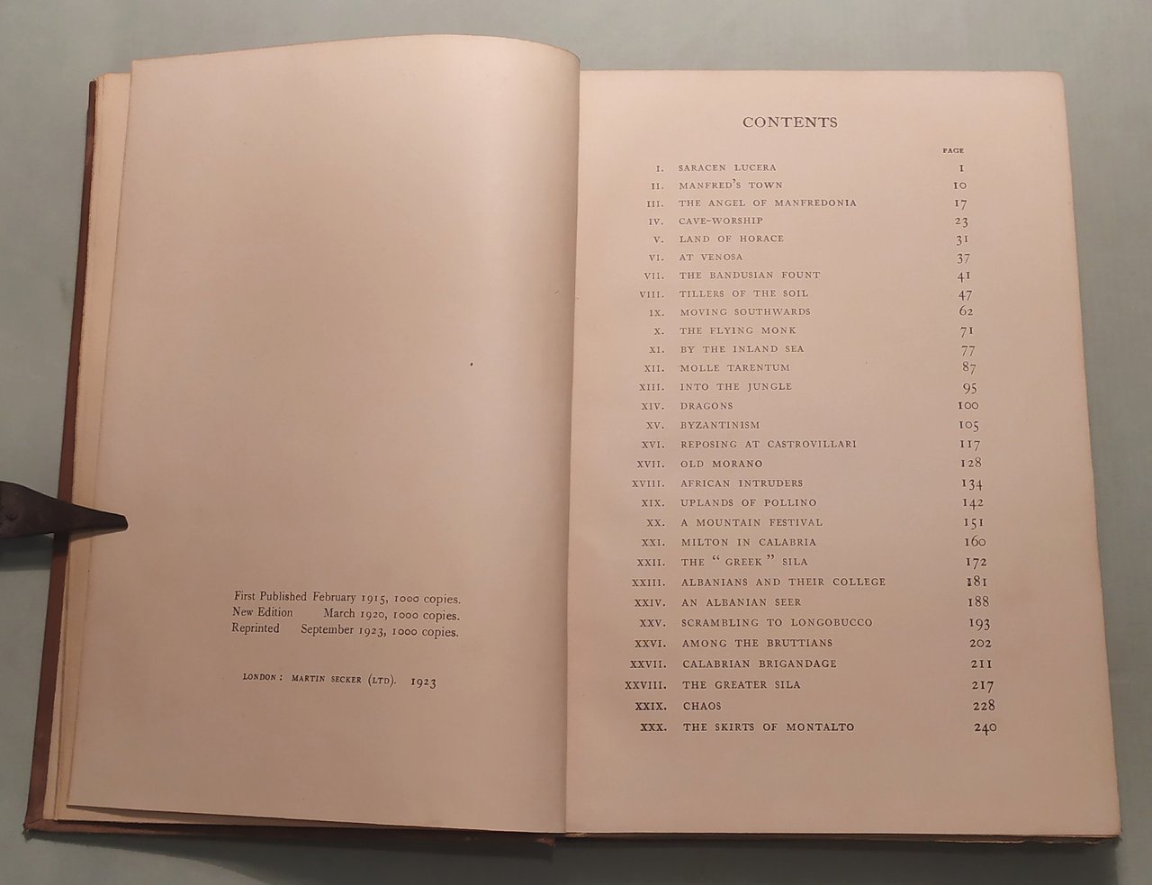 London, Martin Secker, 1923. Third printing. In 8vo; pp.VI, 352. Copertine originali in tela color tabacco, titolo in oro al dorso. Edizione rara, è la ristampa in mille copie della seconda edizione pubblicata nel 1920. Woolf A16b.