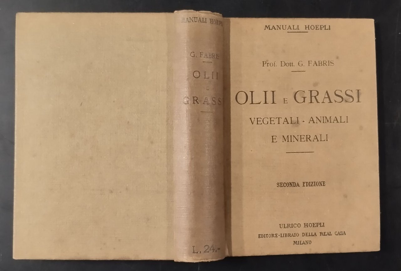OLII E GRASSI VEGETALI ANIMALI E MINERALI di Guido Fabris 1923 Hoepli Libro