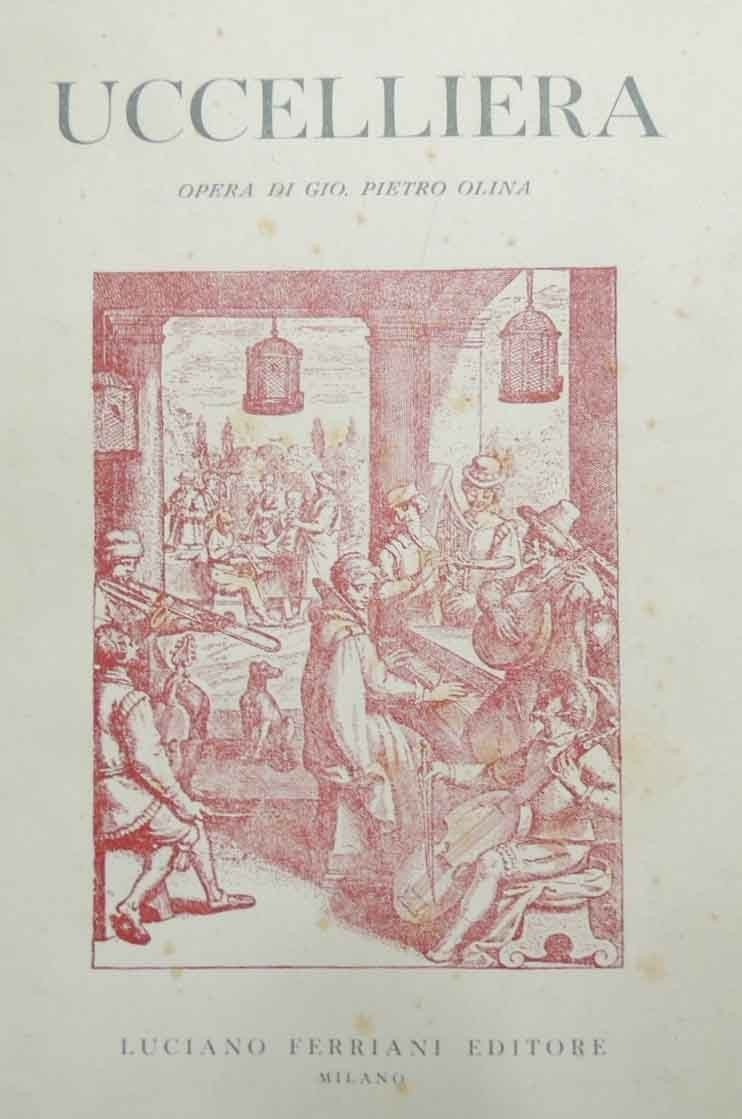 Uccelliera ovvero Discorso della natura e proprietà di diversi uccelli e in particolare di quelli che cantano, con il modo di prenderli, conoscerli, allevarli e mantenerli e con le figure cavate dal vero e diligentemente intagliate dal Tempesta e dal Villamena, opera di Gio. Pietro Olina, novarese dottore di legge, dedicata al sig. cavalier Dal Pozzo, trascrizione, prefazione e note di Piero Chiara, Luciano Ferriani Editore, Milano 1959, pp. 418, ill. b.n., cm 24, cart. ed. con titoli al dorso e sovraccoperta. Collana Scienza e natura. Riproduzione facsimilare dell’edizione stampata in Roma, appresso Andrea Fei, nel 1622. Leggere tracce d’uso alla sovraccoperta, minime fioriture a prime e ultime carte e alla sovraccoperta, macchioline da contatto con carta gommata all’occhiello e all’ultima carta di guardia, lievissima ingiallitura della carta, per il resto molto ben conservato.