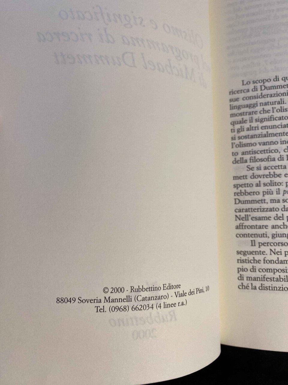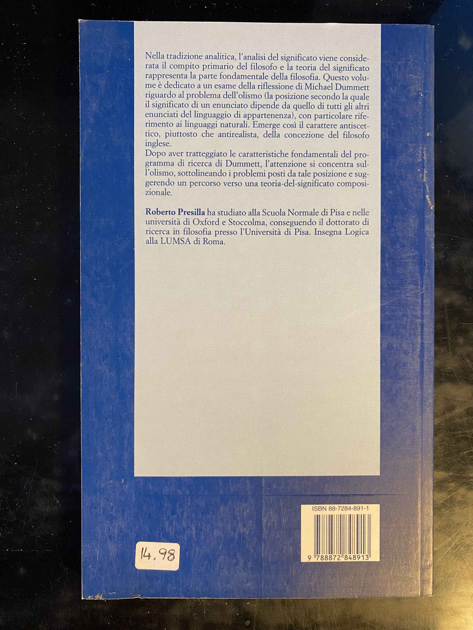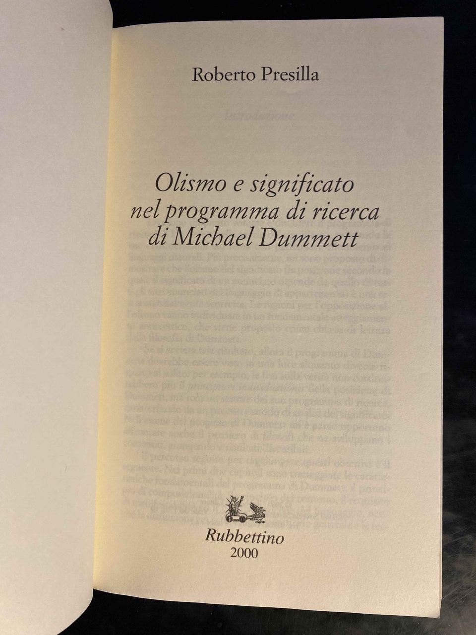 Olismo e significato nel programma di ricerca di Dummett, R. Presilla 2000 RARO