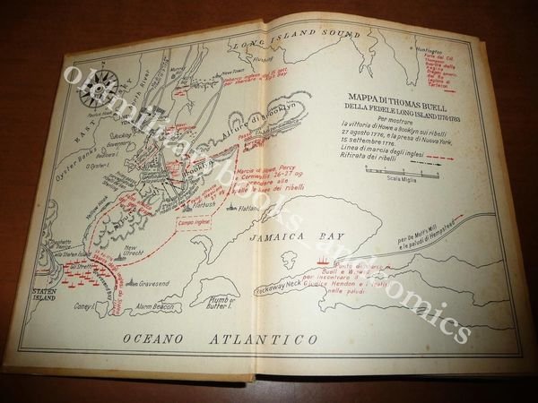 DESCRIZIONE: Ed. Mondadori, Milano, 1949. In 8°, br. edit. s.pelle bianca con fregi oro al dorso e al piatto, pp. 754 con 2 schizzi b/n f.t. Uno dei romanzi migliori ambientati durante la rivoluzione americana, con eventi che si sviluppano fra Boston, New York, Londra e Parigi. CONDIZIONI: Discrete. Fregi in oro consumati, alcune macchie di inchiostro rosso sulla copertina. Un bollo di ex libris sul frontespizio. PESO / WEIGHT: 1000 gr. without package
