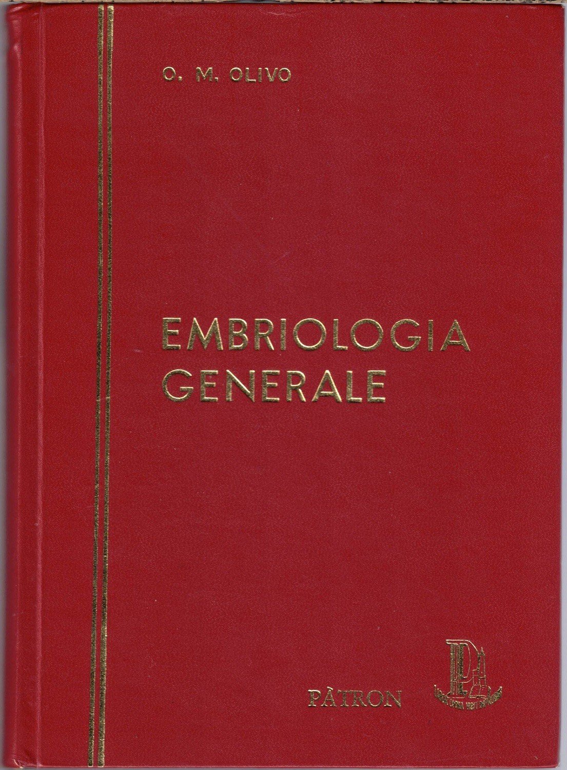 Oliviero Mario Olivo, Embriologia generale, Casa Editrice prof. Riccardo Patron, Bologna 1971, settima ed., pp. 286, ill. b.n., cm 22, similpelle ed. con titoli in oro al dorso e al piatto. Alcune sottolineature a matita e pastello rosso e blu, qualche sporadica annotazione a margine a matita, minima brunitura della carta, per il resto buon esemplare.