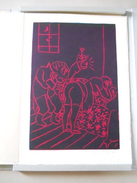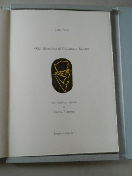Racconto in dialetto portale con a fianco la traduzione in italiano, edito dal prof. Sergio Torresani, per le edizioni G., con i tipi della Tipolitografia Emiliana di Reggio Emilia. Il carattere Garaldus antico del testo è impresso su carta a mano delle Cartiere Enrico Magnani di Pescia. I linoleum sono stati tirati su torchi a mano di Nemo Galleni.