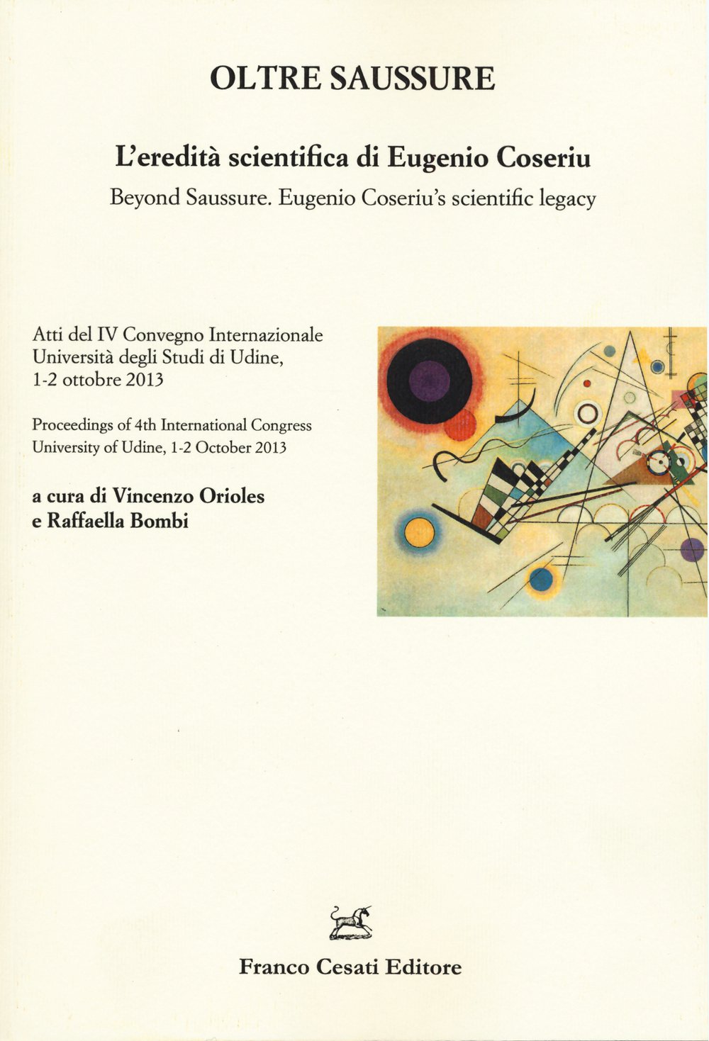 Promosso dalle Università degli Studi di Udine e di Milano, il IV Congresso Internazionale Oltre Saussure. "L'eredità saeniifica di Eugenio Coseriu / Beyond Saussure. Eugenio Coseriu's scientific legacy", tenutosi a Udine nei giorni 1-2 ottobre 2013 ha assicurato continuità alla tradizione dei precedenti convegni tenutisi con cadenza biennale a Aix-en-Provence nel 2007, a Cluj-Napoca nel 2009 e ad Almeria nel 2011 che hanno dimostrato l'attualità della teoresi coseriana, l'interesse da parte dei linguisti nei confronti di tale tematica e, non da ultimo, le possibilità di un ulteriore sviluppo del modello di Coseriu. Riteniamo di fare cosa utile riportando qui di seguito la sequenza dei tre convegni completa dell'indicazione dei relativi atti.