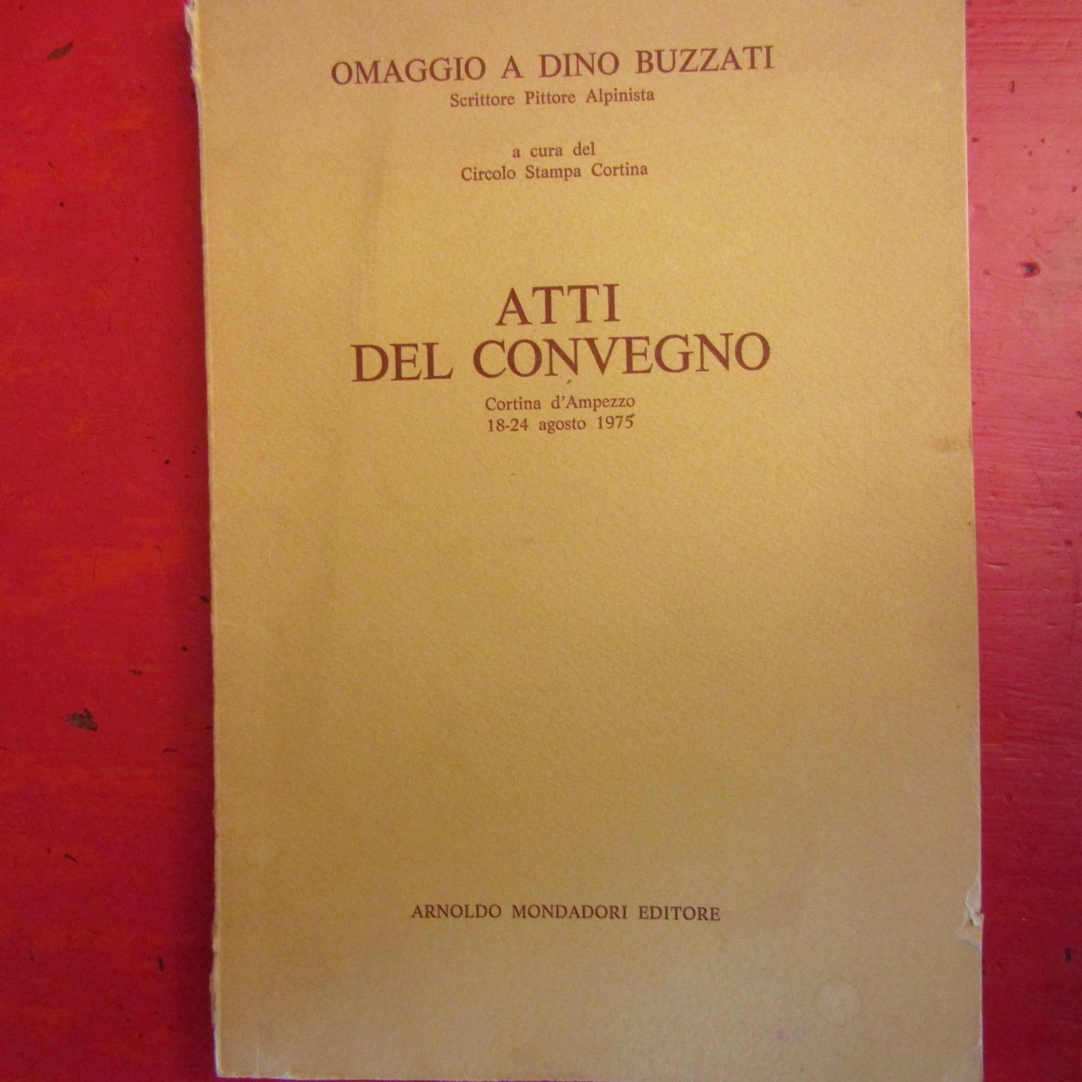 Prima edizione, Atti del Convegno svoltosi a Cortina d'Ampezzo, 18 - 24 agosto 1975, relazioni di: R. Bacchelli, G. Mazzotti, Rolly Marchi, G. Pampaloni, I. Montanelli, P. Chiara L. Chailly e altri, brossura, formato 17x24x1, pagine 88, con 3 fotografie in nero e 2 tavole a colori fuori testo, buone condizioni - 51340