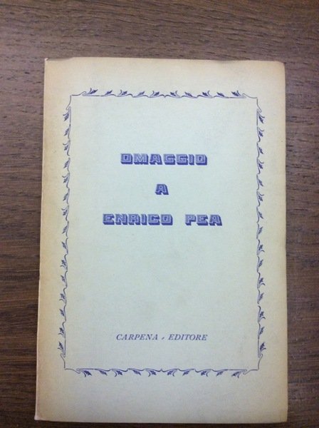 In-16 gr., cartoncino editoriale, pp. 134,(6), con un ritratto di Enrico Pea. Prima edizione di questa raccolta di scritti di Cecchi, Del Beccaro, Gigli, Paoli e Trombatore. Ben conservato.